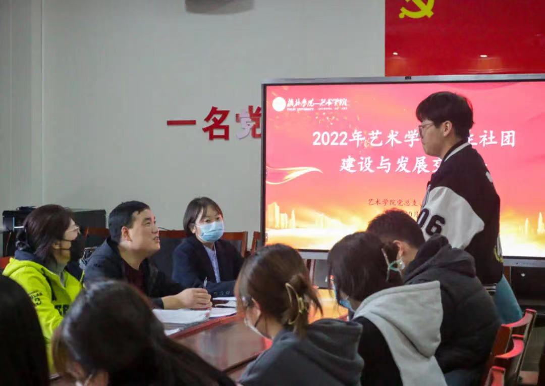 会上,团总支书记张磊汇报了学院2022年学生社团申报及建设情况,对新建社团后续建设工作与学生社团年度审核工作予以安排,并就社团建设与管理中的相关问题与指导教师、学生负责人交流。党总支书记刘小龙对2022年各新建社团的成立表示祝贺,同时也对社团运行管理提出明确要求。他指出,各学生社团要要坚持正确的政治方向和政治立场,落实意识形态责任要求,以习近平新时代中国特色社会主义思想为指导,团结好、凝聚好、服务好广大青年学生,通过积极开展方向正确、健康向上、格调高雅、形式多样的社团活动,丰富校园文化生活,繁荣校园文化。他要求,各社团要尽快制定年度计划,要按照计划开展活动,要有内容、有步骤、有效果,严格遵守宪法和法律,严格落实学校社团建设管理要求,按时完成社团年度审核工作,不允许有任何形式邪教活动、迷信活动,使社团成为一个学生锻炼、展示的平台。他表示,各社团要坚持守正创新,创造性的开展活动,通过传播正能量,激发学生的参与热情;各社团要结合党的二十大报告相关内容,尤其本地红色资源、红色历史,开展深受同学们喜爱的社团活动,进一步发挥好学生社团的育人功能。