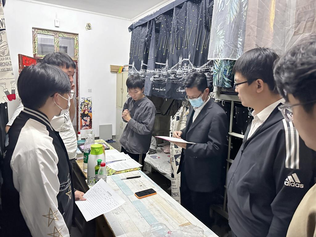 为提高学生宿舍安全卫生意识,杜绝安全隐患,确保宿舍安全,10月16日晚8时,德赢vwin体育官网党总支书记刘小龙、副书记钟梅、辅导员杨壮林带领德赢vwin体育官网学生会生活服务部全体成员对学生宿舍进行安全卫生大检查。