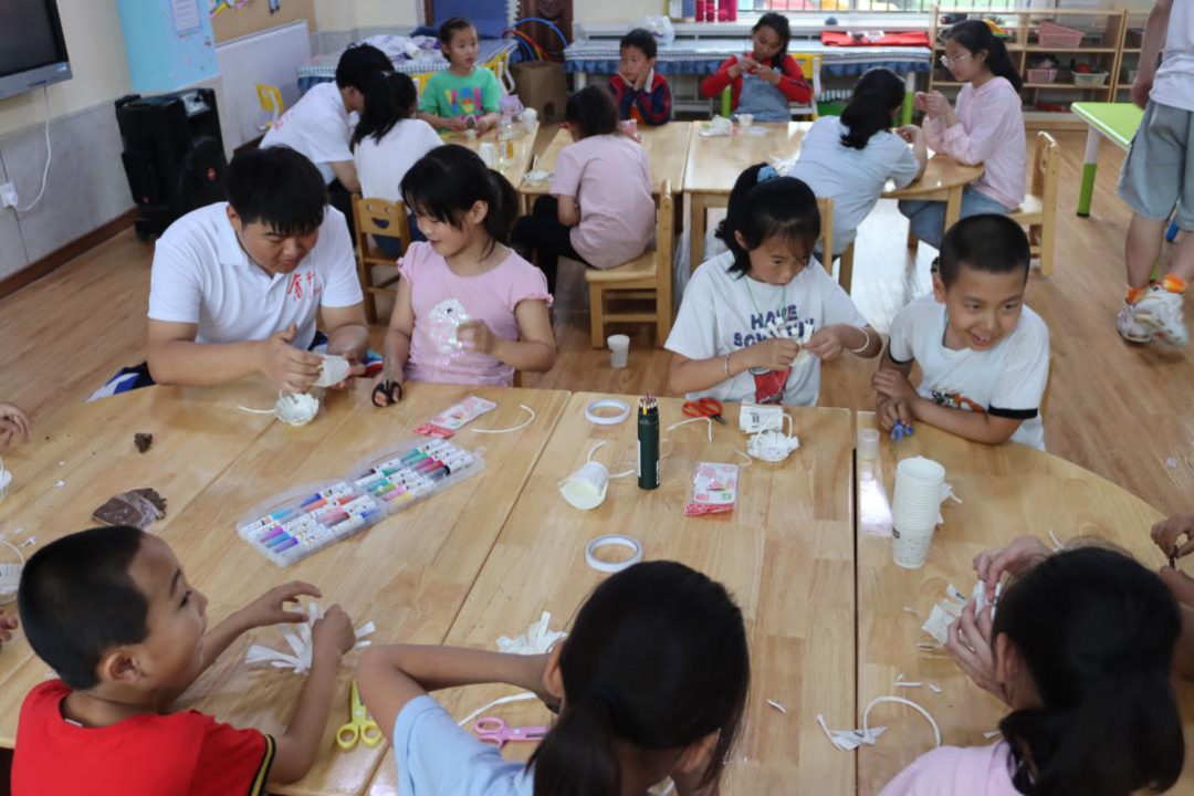 手工课上孩子们一把把小剪刀做纸工,咔嚓咔嚓咔嚓嚓剪出了自己满意的小花篮。