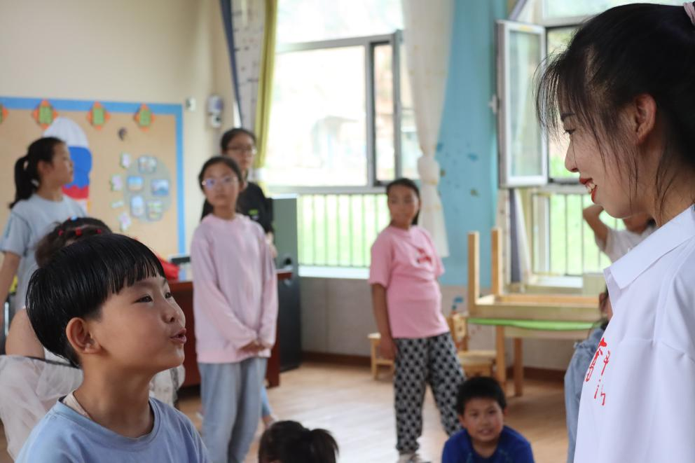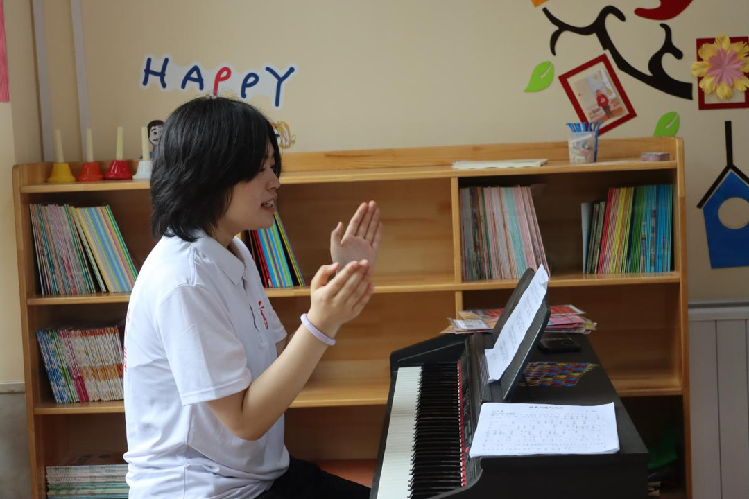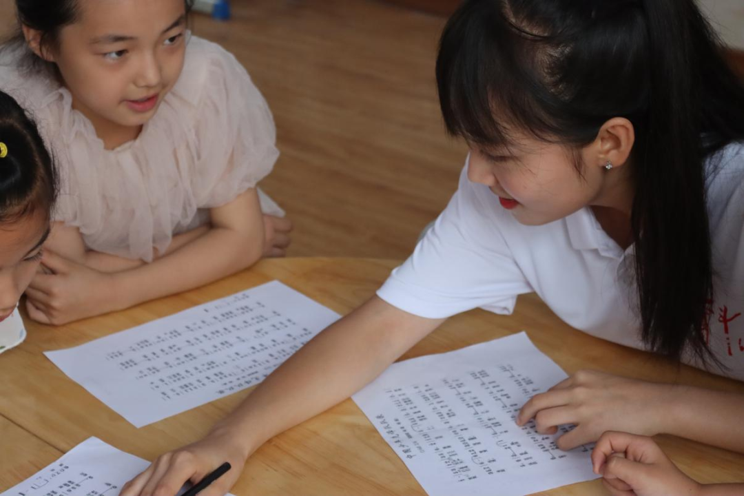 音乐课上,在老师的示范下学生们从生疏到熟练,跟着老师的节奏在一次次的练习中不断进步着。