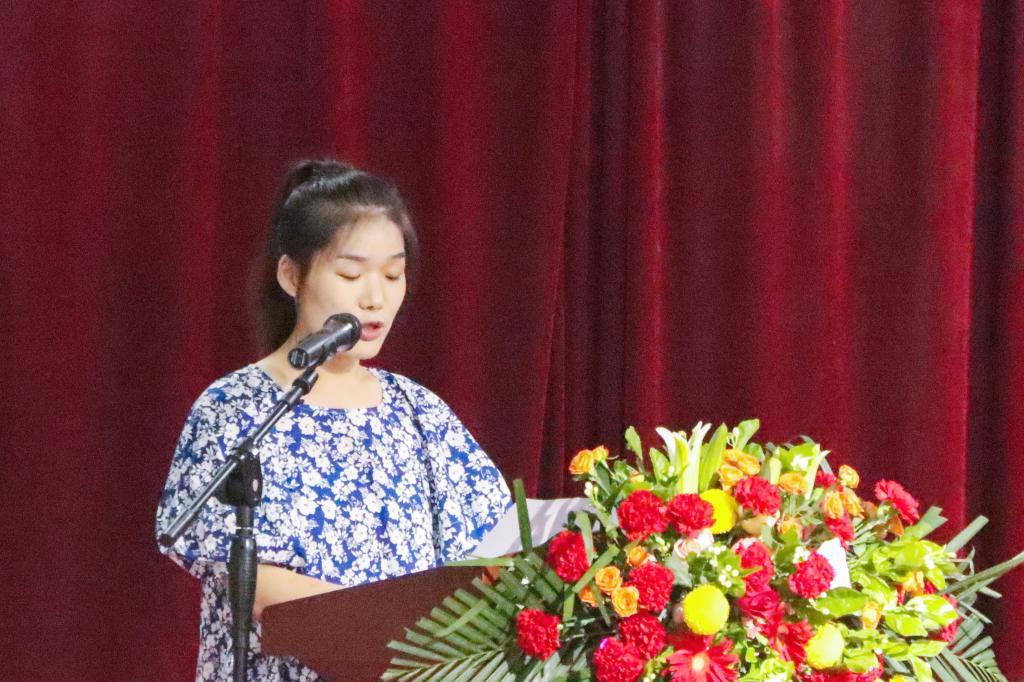 学生代表高霞,深情回忆了校园美好时光,感慨求学求艺中的艰辛和喜悦。四年里,同学们之所以能由懵懂少年走向睿智笃定、自信成熟,主要得益于学校各级领导、老师以及朝夕陪伴、严管厚爱的班主任辅导员等的谆谆教诲,他们将致以最衷心的感谢和最诚挚的敬意!他们今后不管身处何时何地,都将怀揣母校给予我们的教导,怀揣对于生活的热爱,牢记青年一代的理想与担当,将母校给予他们的知识智慧和人文精神,充分展现在各自人生当中。祝愿母校走向更加辉煌的明天!