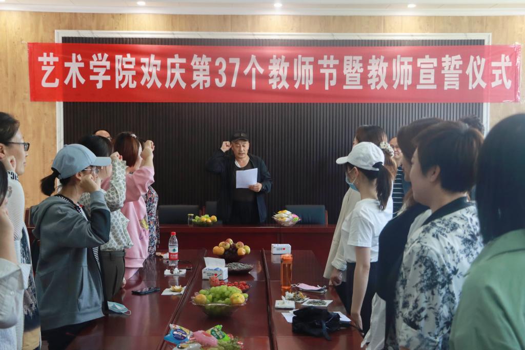 庆祝活动第一项由白涛书记带领全体教职工庄严宣誓:作为一名光荣的人民教师,忠诚党的教育事业,贯彻党的教育方针,履行教师职责。修身立德,为人师表。做有理想信念、有道德情操、有扎实知识、有仁爱之心的好教师。爱国守法、忠于职守、严谨治学、关爱学生、廉洁从教、甘于奉献、为党育人、为国育才,为培养德智体美劳全面发展的社会主义建设者和接班人努力奋斗,为中华民族的伟大复兴奉献自己毕生的精力!全体教职工在庄严的宣誓中更加坚定了自己的教育初心与理想信念,更加肯定了自己的职业选择与使命担当。