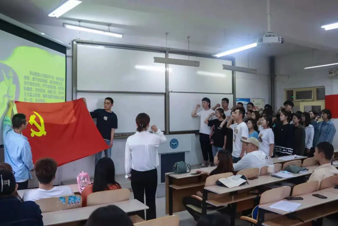 6月16号下午14:30德赢vwin体育官网学生党支部在五号教学楼404召开了学生党支部主题党日活动。出席本次活动的有德赢vwin体育官网党总支书记白涛,党支部副书记乔荣华,党总支秘书、学生党支部书记高慧以及全体学生党员、预备党员、入党积极分子。本次活动旨在让学生党支部的学生“重温入党誓词,坚定理想信念”。