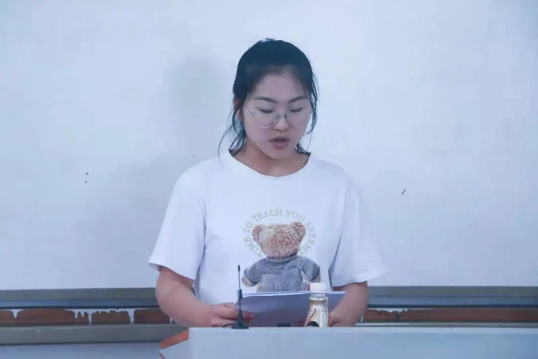 17级音乐学刘昱良同学在发言中说到自已从积极分子到发展对象、从发展对象到预备党员、再从预备党员成为一名中共党员,经历过党课培训、服务过运动会、参加过条件简陋的三乡下活动,也随榆苑合唱团参加过各类比赛和节目录制。时光随之流失,但也获得良多,后来,参加实习、参加考试、参加工作,也依旧是成绩突出。