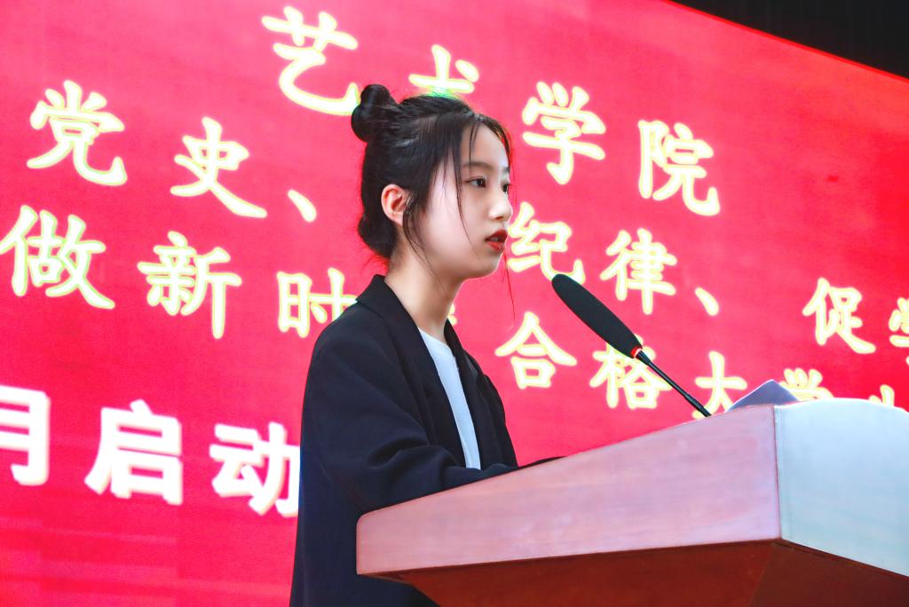 学生代表视传20本1班李哲祯同学领学校学生会关于学风建设的倡议书:作为新时代青年,应牢记习近平总书记嘱托,志存高远,坚定理想信念,脚踏实地,发扬奋斗精神,立大志、明大德、成大才、担大任。青年兴则国家兴,青年强则国家强。