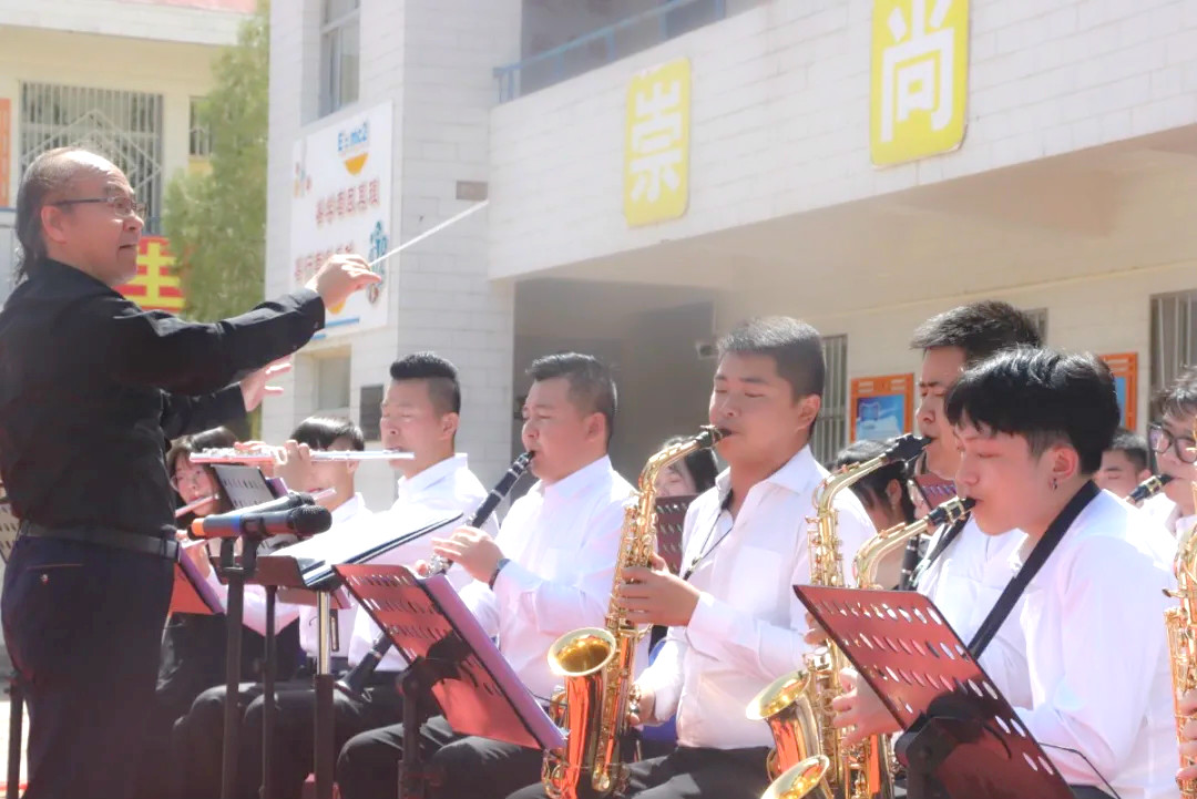 2020年6月1日上午10:00,德赢vwin体育官网与横山区塔湾中学举行了教育实践基地签约仪式以及庆祝中国共产党成立100周年“永远跟党走”—“艺术进基层100场”展演活动之管乐团赴横山塔湾中学专场演出。