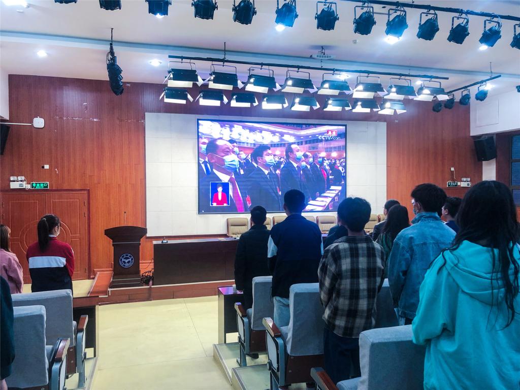 3月7日晚上,院长孟强、副院长周勇、杨雨佳、副书记蹇攀峰、团总支书记张磊、辅导员李伟凤、杨壮林与学生干部、学生党员、学生代表160余人观看了全国“两会”开幕式。会后大家反响热烈,同学们纷纷表示一定刻苦努力,学好专业知识,准确认识新阶段、新理念、新格局,做思想的先行者、时代的奋斗者、祖国未来的建设者;老师们表示要解放思想敢担当,追赶超越提质量,将全国两会精神落实到具体工作中,确保“十四五”各项工作开好局、起好步,以优异成绩庆祝中国共产党成立100周年。