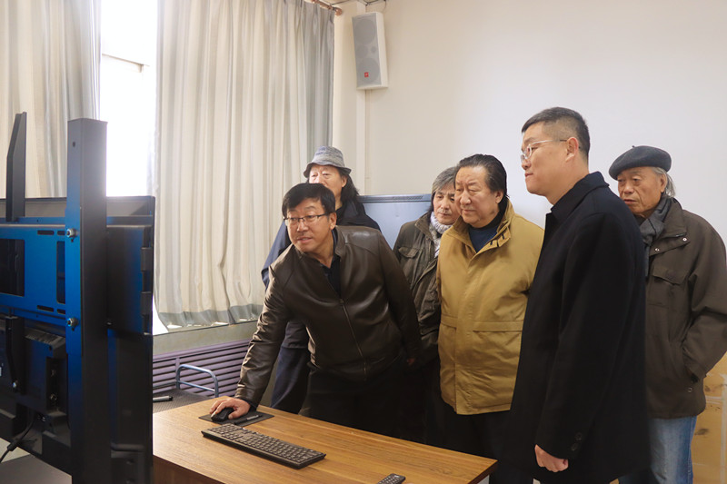 杨晓阳主席一行8人听取了孟强院长对德赢vwin体育官网近几年在教学科研、办学思路等方面的情况汇报。参观了德赢vwin体育官网数字临摹室、壁画工作室,还特意到学生书画室观看了学生们上美术课的场景,并向美术老师们了解了美术专业的教学情况,与课堂师生进行了愉快的交流。