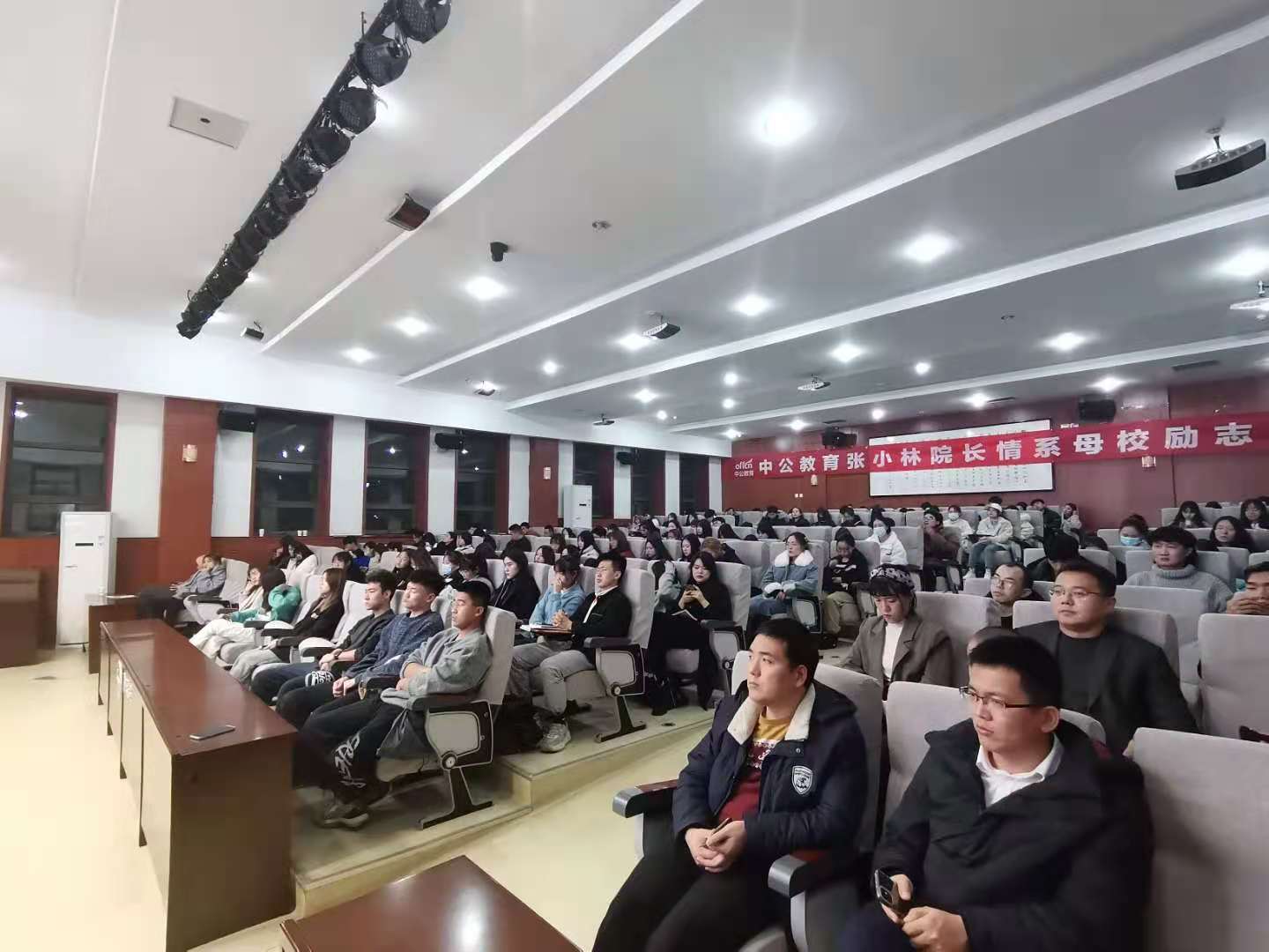 为了让德赢2018、2019级学生尽快了解考研和就业的形势及相关政策、满足大家掌握考研和求职的入门技巧的需要,11月17日晚19:30,德赢在逸夫楼一楼报告厅举办了“德赢vwin体育官网考研与就业形势报告会”。本次报告会邀请了中公教育陕西研究院院长张小林校友担任主讲,副书记蹇攀峰、团总支书记张磊、辅导员杨壮林与德赢vwin体育官网18、19级200余名学生聆听了报告。张磊主持报告会。