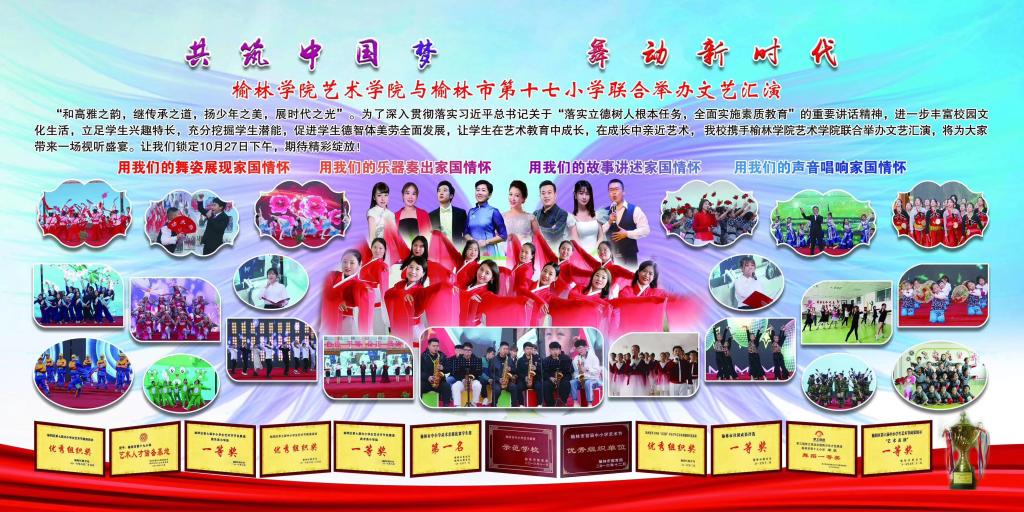 10月27日下午,榆林市十七小学校园内人头攒动、歌声如潮,洋溢着欢乐的气氛。榆林市十七小学第六届文化艺术节暨德赢vwin体育官网与十七小联合文艺汇演如期举行。德赢vwin体育官网党总支书记白涛、党委宣传部副部长尚莹、教务处副处长陈小辉、研究生处副处长高芸、德赢vwin体育官网副院长周勇、副书记蹇攀峰、教学秘书高晶、团总支书记张磊、辅导员李伟凤、杨壮林、教师赵一鸣、曹惠君、尤惠、姜旭、高芙蓉、米晨阳一起观看、参与了演出。
