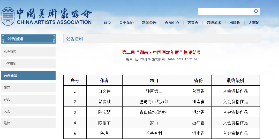 德赢教师白文伟的国画创作《钟声远去》在中国美术家协会主办的第二届“湖南·中国画双年展”中荣获入会资格作品(最高奖)。