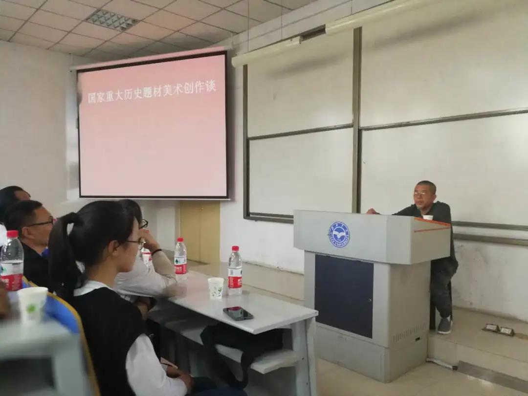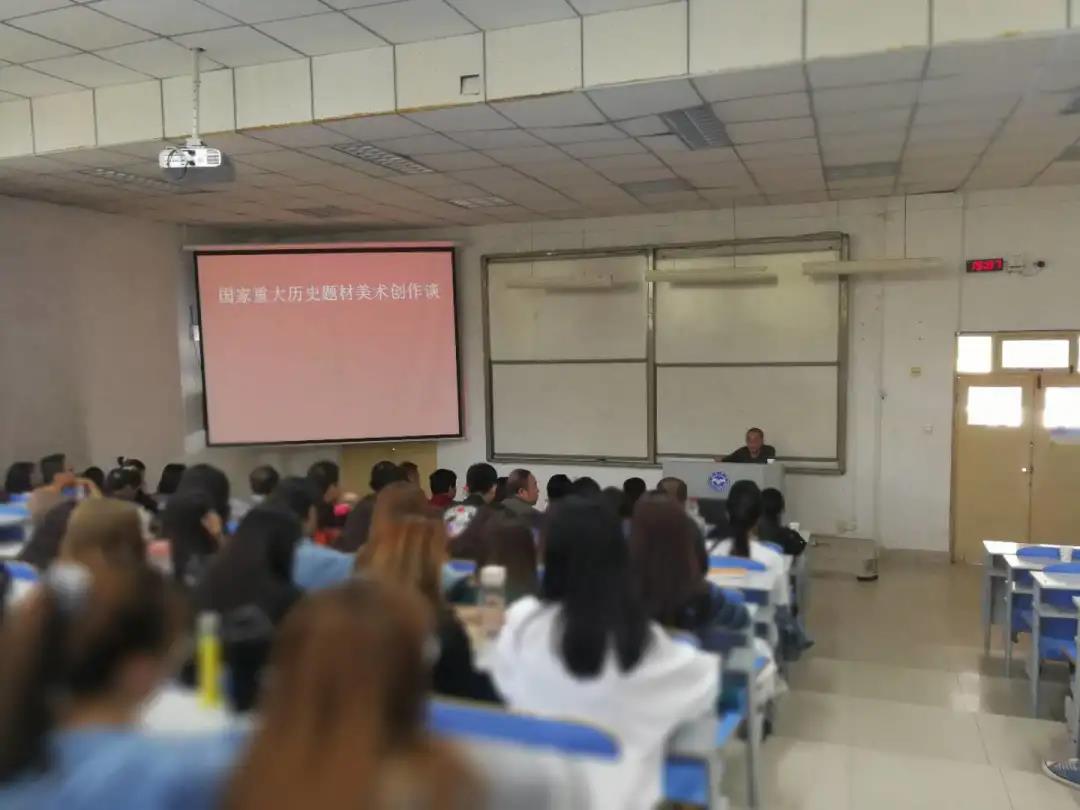 吕书峰教授站在专业的角度,用渊博的理论知识为大家讲述了在进行国家重大题材美术创作中遇到常见问题以及思考方法,分享了自己在创作时的心得感悟,为我校美术学专业同学在进行此类创作时指明了方向,得到在场师生的一致赞誉。