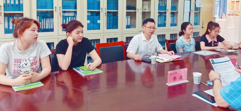 会上,刘小龙用英文对陕西榆神外经贸发展有限公司国际贸易经理乔治一行的到来表示热烈欢迎后,又简要介绍了学校近年取得的长足发展及德赢vwin体育官网专业师资力量和学生培养情况,并对参加面试的学生做了推荐。