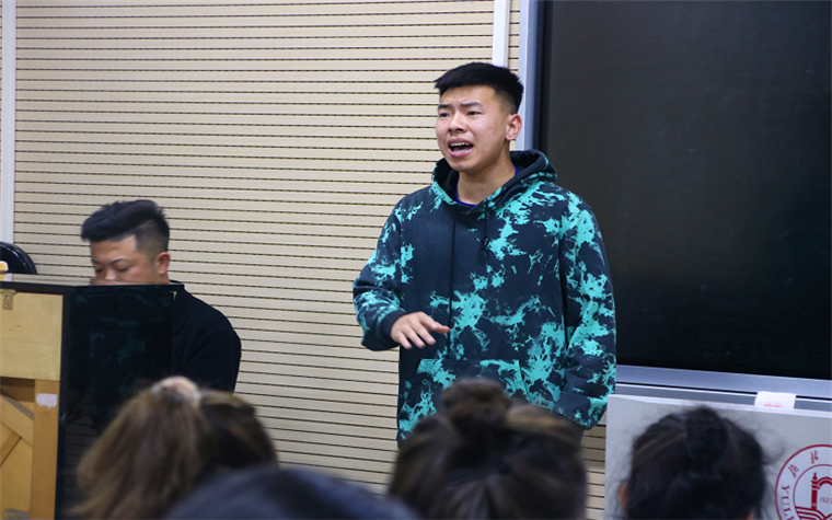 陕北说书班学员高珩理是横山人,对陕北说书有着浓厚兴趣的他,看到学校新开设陕北说书公共课,第一时间就选了这门课。“陕北说书觉得挺有意思,上课时老师给我们教了几段陕北说书,十分动听,我现在已爱上陕北说书,努力做一个陕北说书的文化传承者,发扬陕北地域文化。”高珩理说。