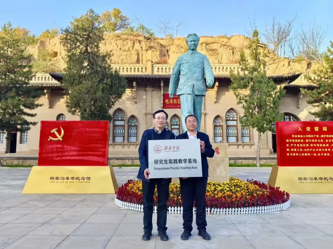 10月29日下午,“德赢vwin体育官网实践教学基地”签约揭牌仪式在杨家沟革命纪念馆举行。此次活动旨在落实教育部办公厅关于组织开展高校大思政实践教学基地结对行动的要求,进一步加强双方在本科生、研究生实践教学、文化交流、强化人才培养质量等方面的合作。杨家沟革命纪念馆馆长姬喜东、副馆长刘翠霞,德赢vwin体育官网研究生院院长张雄、德赢vwin体育官网副院长白云等师生参加活动仪式。