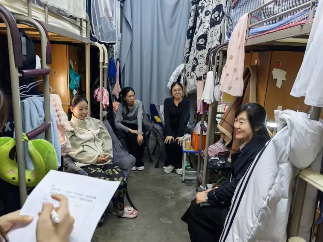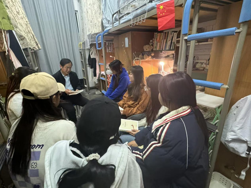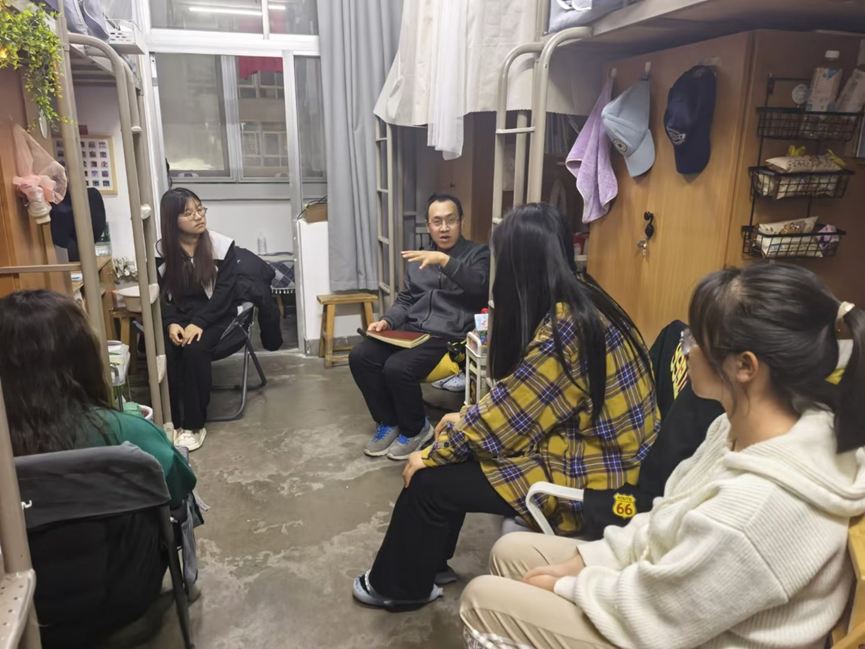 为贯彻落实立德树人根本任务,持续深化“五乐”育人工程,充分发挥“一站式”学生社区的育人阵地优势,进一步增强大学生思想政治教育的针对性、时效性和亲和力,10月16日到11月10日,党委委员、党委组织部部长李夏隆,德赢vwin体育官网党总支书记刘小龙,院长杨雨佳,副院长白云、王蓓蓓,副书记钟梅,组织部、宣传部、学工部、团委相关科级干部以及院系科级干部,和辅导员班主任分别走进新生宿舍,与德赢vwin体育官网学生共话奋斗。