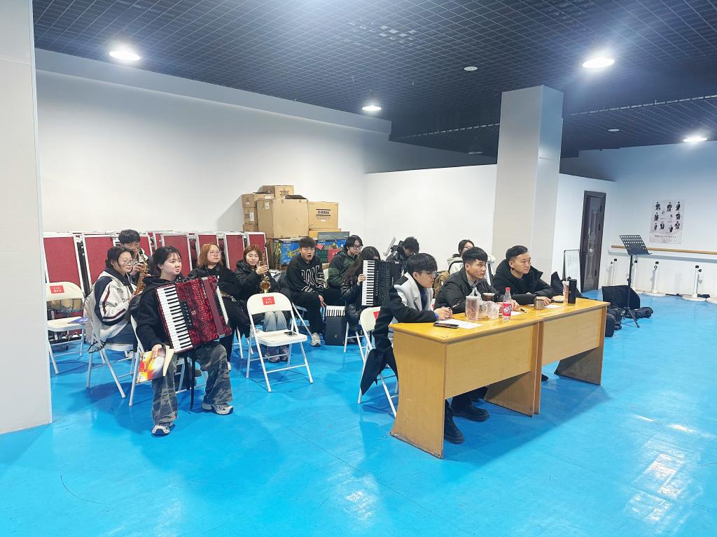 4月10日,音乐教研室西洋器乐组在管乐排练室举办萨克斯与手风琴专业联合月考,这是本年度第五次、本学期首次跨专业教学成果检验活动。2023级音乐专业23名学生通过独奏、重奏等形式,全面展现阶段性学习成效。