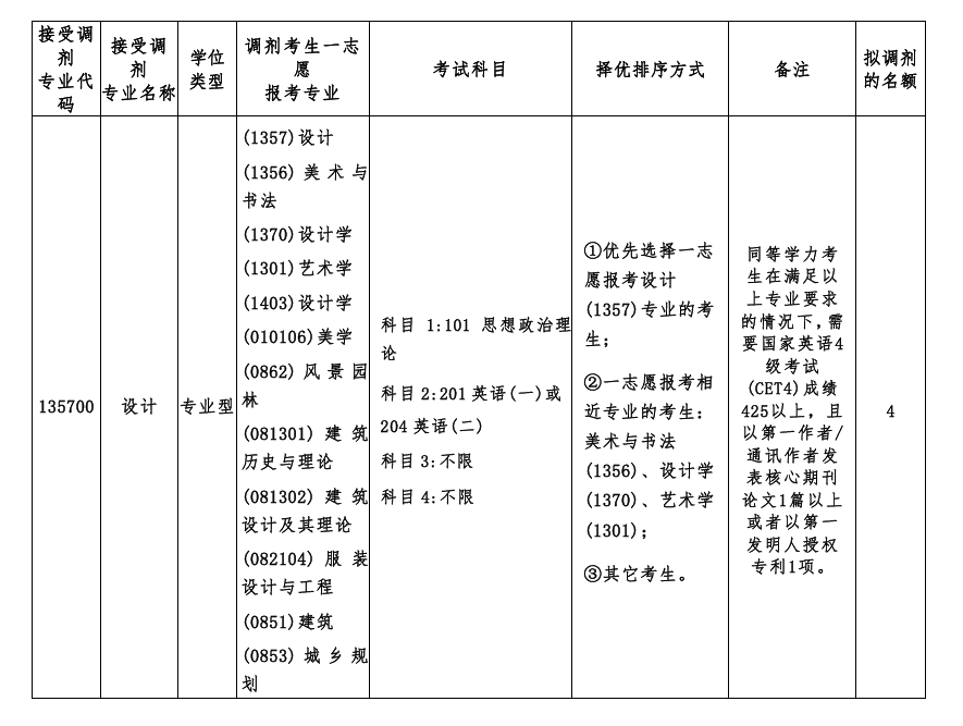 3.调剂考生第一志愿专业与调入专业相同相近,或初试科目与调入专业初试科目相同相近。其中一志愿报考专业的统考科目数量≥我校相关专业的统考科目数量。