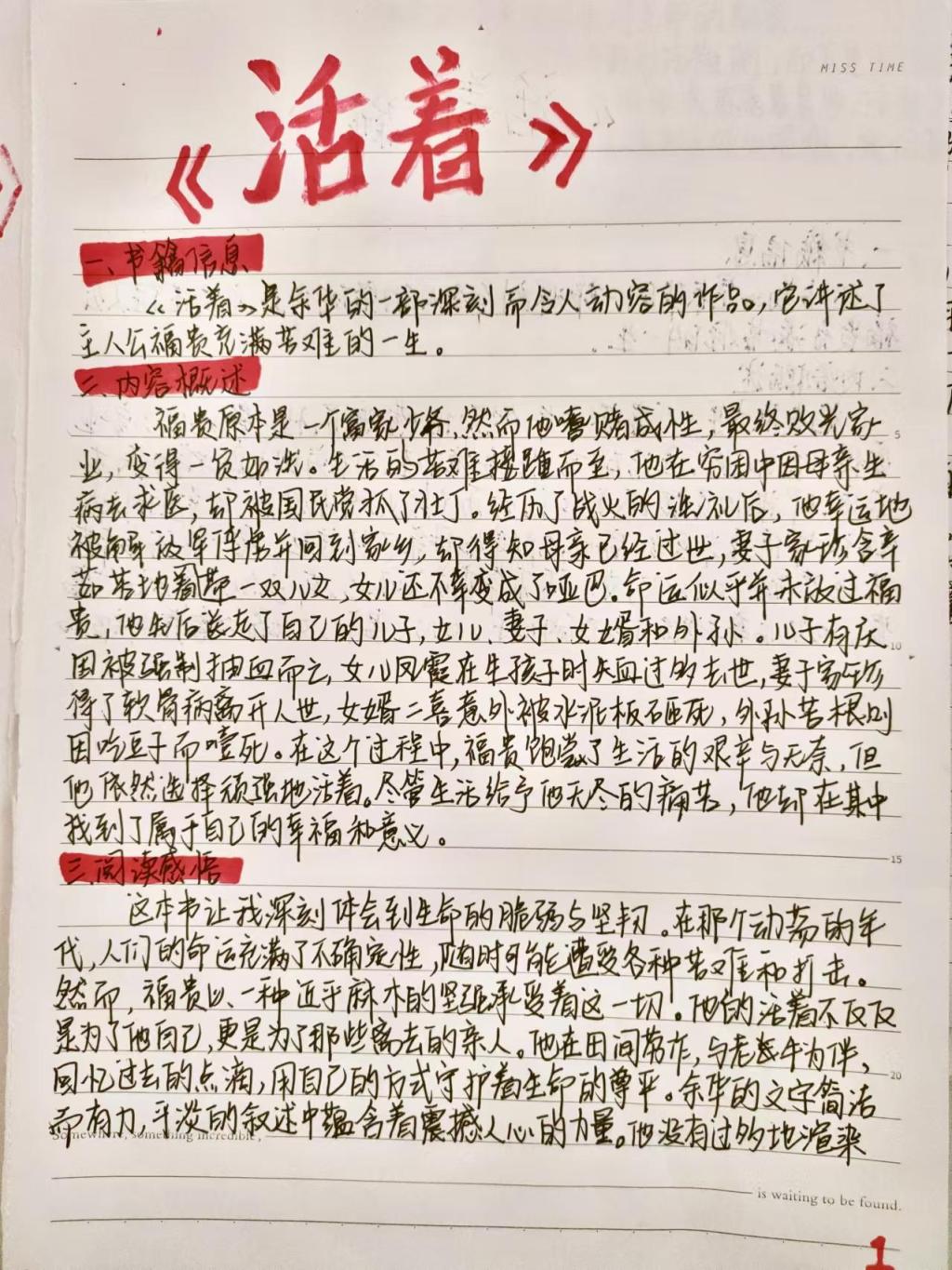 品读《活着》,它就像一首古老而质朴的歌谣,用最平实的语言,向我讲述着生命中脆弱与顽强、欢乐与哀伤的真实故事。主人公福贵的一生充满了苦难,从富家少爷到一无所有,亲人相继离世,命运对他如此残酷,但他依然坚强地活着。这本书让我深刻体会到生命的坚韧,也让我懂得珍惜当下,感恩生活,因为活着本身就是一种莫大的幸福和财富。