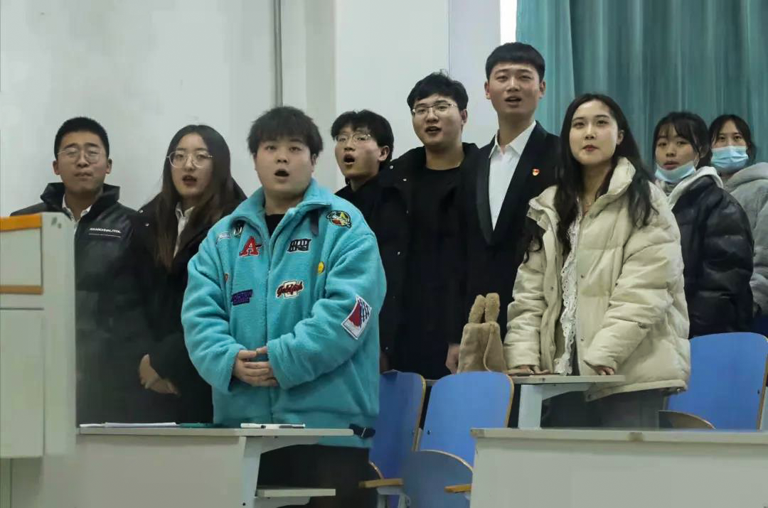 第四项:党总支秘书、学生党支部书记高慧进行总结高慧老师讲到学生党支部现有积极分子228位,预备党员31位,正式党员9位。并用绥德三下乡、线上演唱《中国速度》等事例肯定了学生党支部成员过去一年的工作,并号召大家努力学习党的新思想,为今年的工作奠定基础。