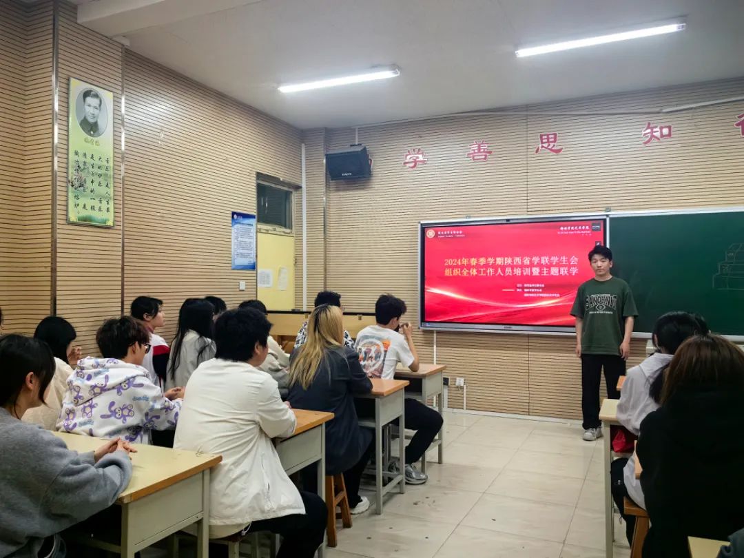 会议集体学习了陕西省学联学生会组织全体工作人员培训暨主题联学会议(以下简称“联学会”)相关文件及会议精神。“联学会”要求,学生会成员要不断保持和增强政治性、先进性、群众性,鼓励学生会组织持续开展着眼于一线的实践活动,结合学校特色推出一批同学关心、同学喜欢的品牌和项目,落实“全心全意服务同学”的工作宗旨,推动学生会组织改革向纵深发展。