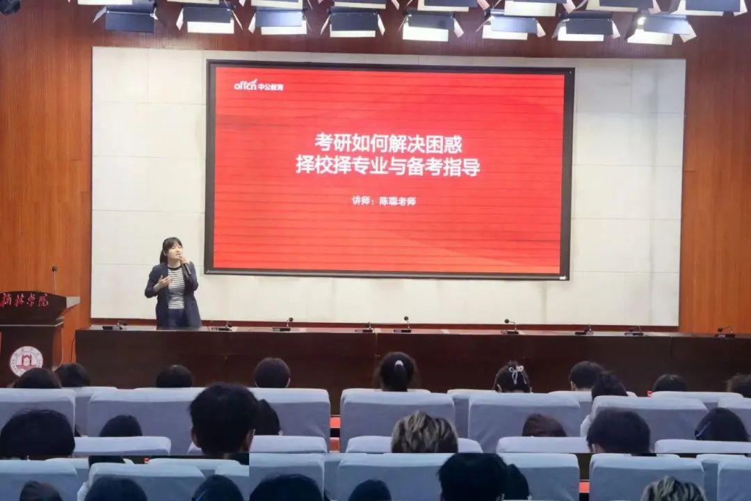 德赢vwin体育官网于4月17日晚7点在逸夫楼一楼报告厅邀请到中公教育陈聪老师,来为同学们开展考研如何解决困惑、择校择专业与备考指导专题讲座。 编发;石文青 图文:刘轩承 审核:郑 娥 复审:钟 梅 终审:刘小龙