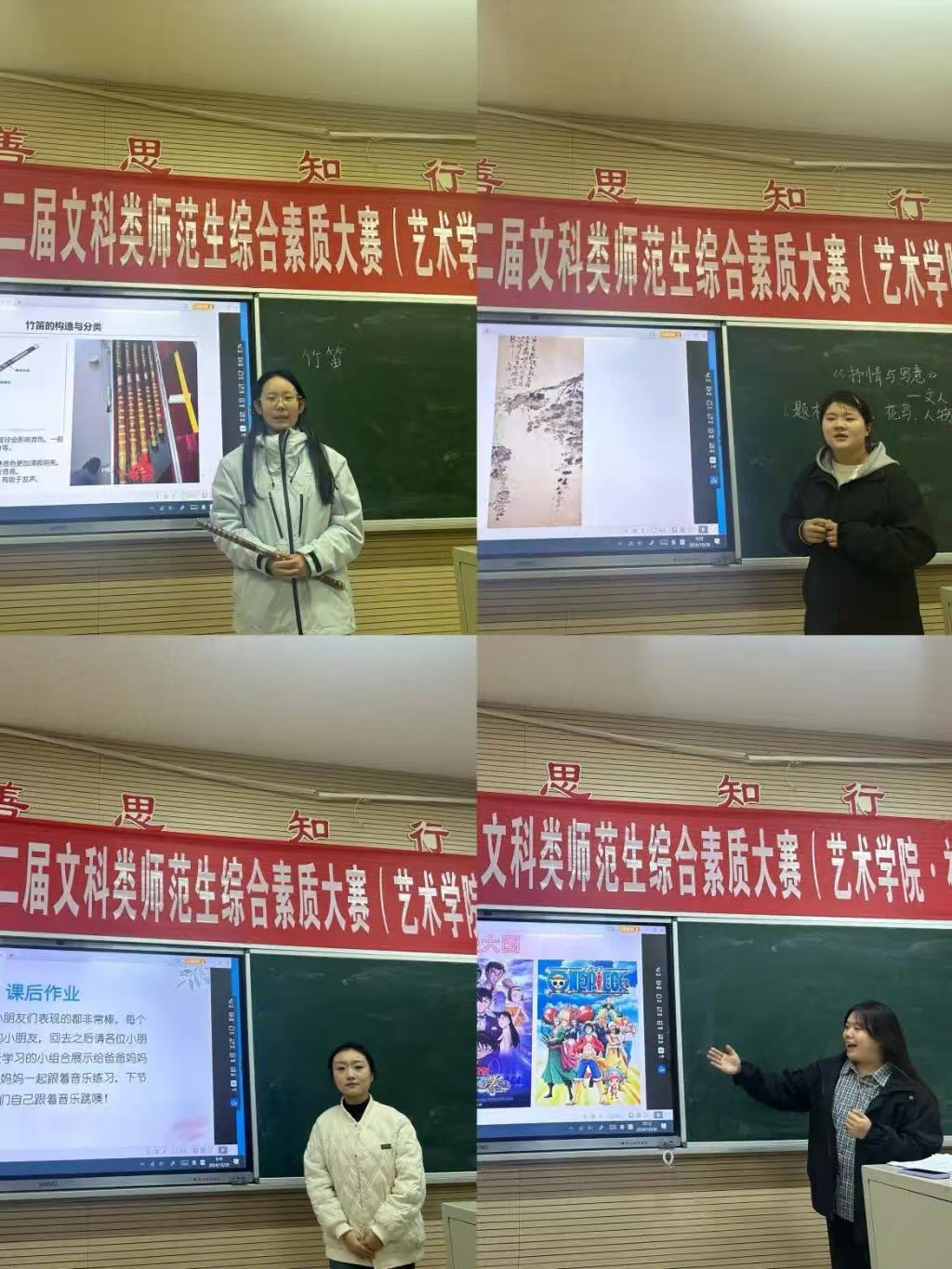 为深入贯彻高校立德树人根本任务,围绕德赢vwin体育官网培养高质量、应用型人才目标,提升师范生实践技能,德赢vwin体育官网于10月30日上午,在艺术楼201教室举办“文科类师范生综合素质大赛·德赢vwin体育官网初赛”。此次比赛共分为说课、模拟讲课两个环节。评委为德赢vwin体育官网教学院长白云、音乐学教研室主任、美术学教研室主任、舞蹈学教研室主任以及相关专业教师。