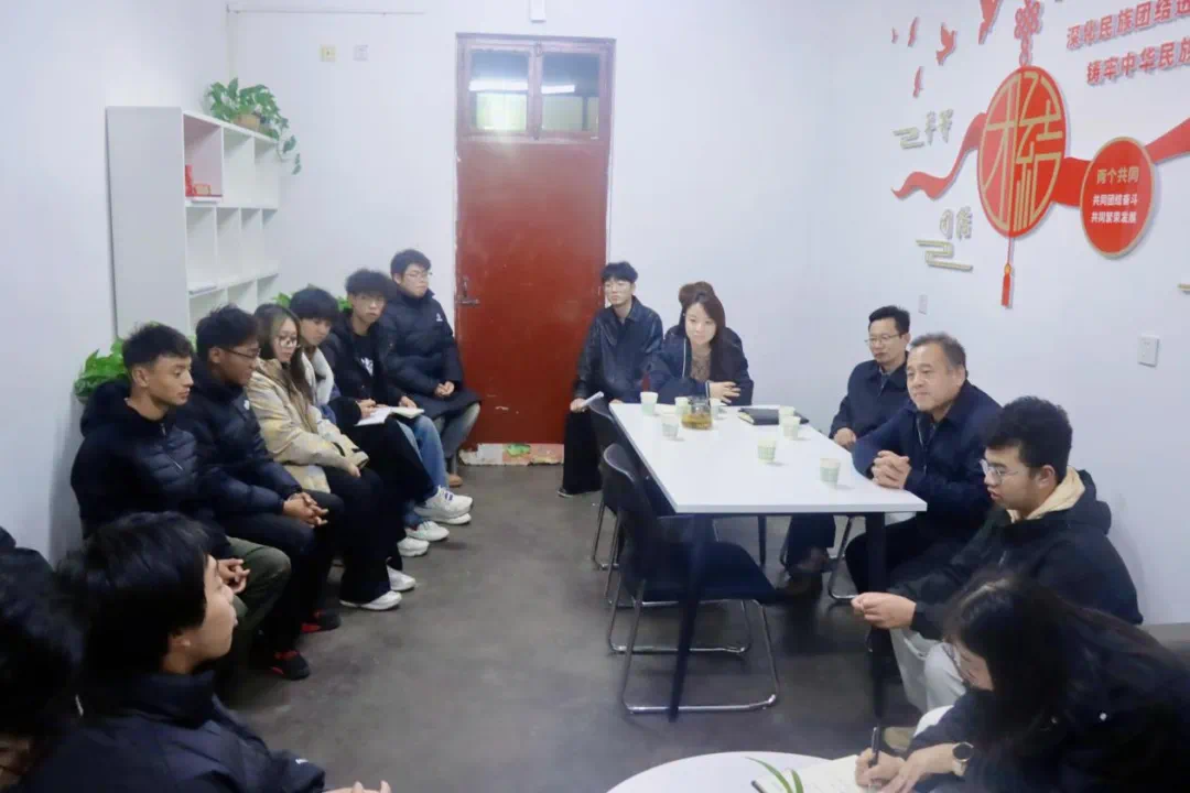 为贯彻落实立德树人根本任务,持续深化“五乐”育人工程,充分发挥“一站式”学生社区育人阵地优势,进一步增强大学生思想政治教育的针对性、时效性和亲和力,11月11日下午,校党委副书记、纪委书记姜劲波带领德赢vwin体育官网党总支书记、副书记与辅导员,走进德赢vwin体育官网大一新生宿舍,与学生面对面交流,深入了解学生思想、生活、学习状况,与同学们畅谈《平凡的世界》,共话奋斗人生。