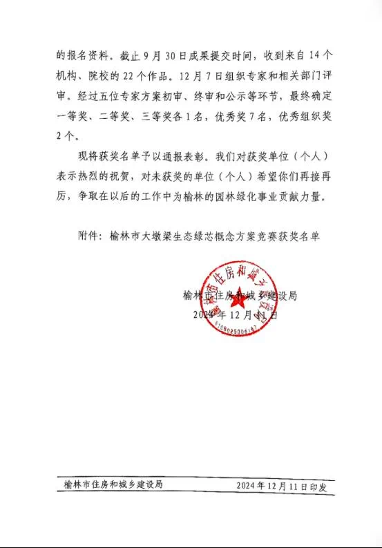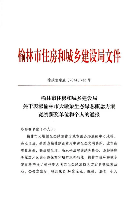 近日,由榆林市住房和城乡建设局面向国内外征集的“榆林市大墩梁生态绿芯概念方案”竞赛评选结果揭晓。