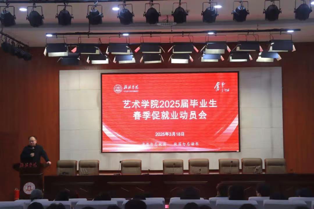 德赢vwin体育官网在逸夫楼报告厅组织召开2025届毕业生春季促就业动员会。特别邀请我校国际交流与合作处处长吴疆作为主讲人,德赢vwin体育官网党总支书记王斌出席会议,