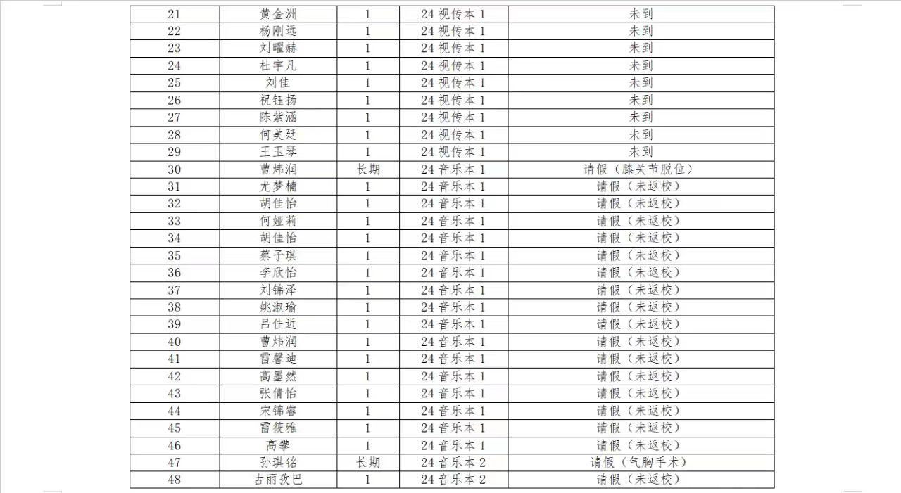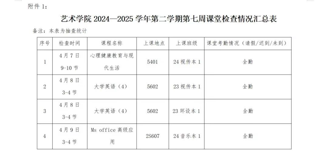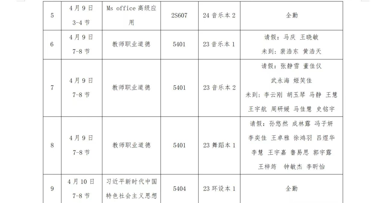 1.课堂学风:大部分班级课堂出勤表现优异,全勤情况较多;少数班级存在迟到或未到现象,影响课堂秩序。