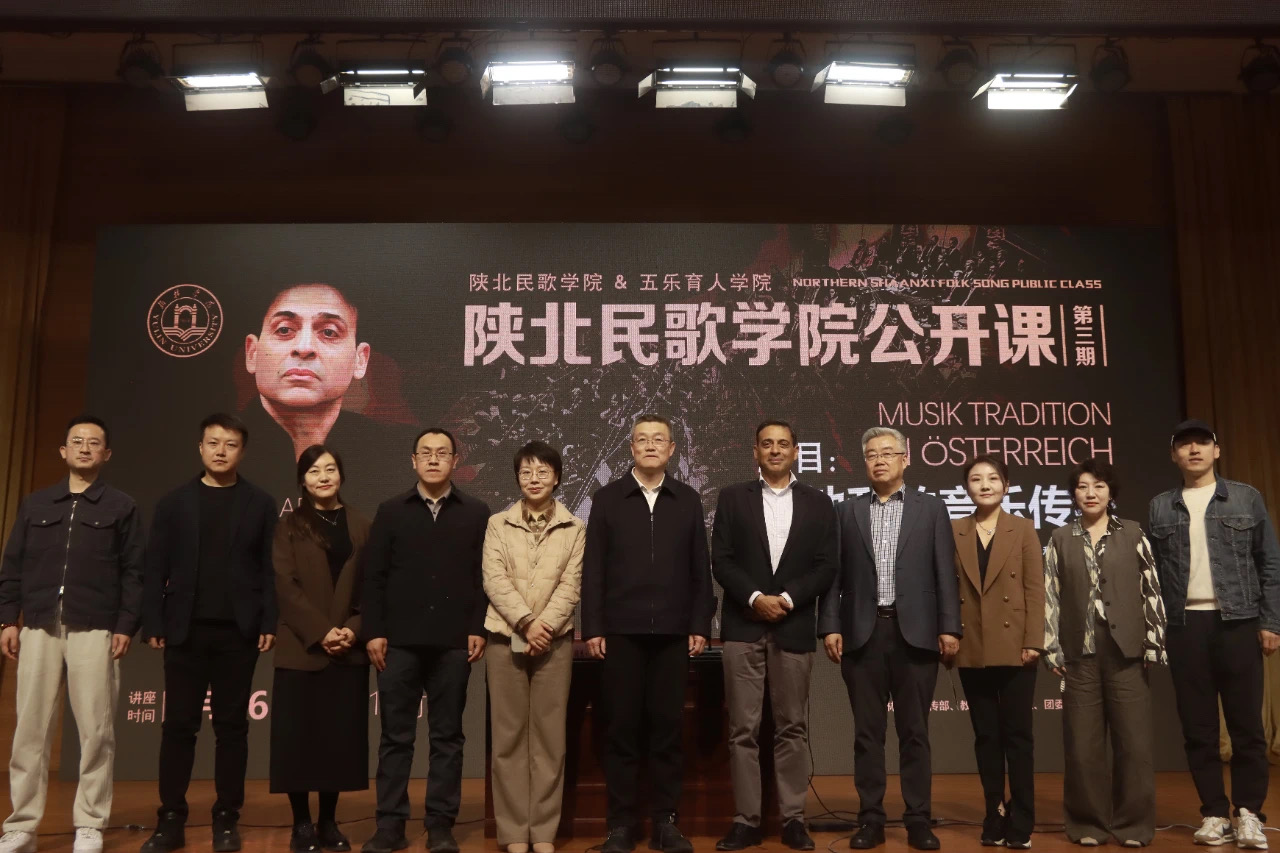 4月16日上午,由德赢vwin体育官网陕北民歌学院与五乐育人学院联合主办的第三期陕北民歌公开课——《奥地利的音乐传统》在图书馆报告厅举行。德赢vwin体育官网宣传部、教务处、学生处、团委、国际交流处等部门负责人出席、德赢vwin体育官网院长杨雨佳以及德赢vwin体育官网全体教师、音乐专业全体同学和众多对怀有浓厚兴趣的学子齐聚一堂,共同沉浸于奥地利音乐文化魅力中。